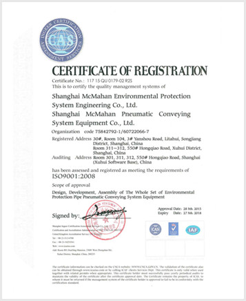 上海麥克曼氣力輸送設(shè)備有限公司系統(tǒng)成套設(shè)備認(rèn)證證書 ······························································································································································································································